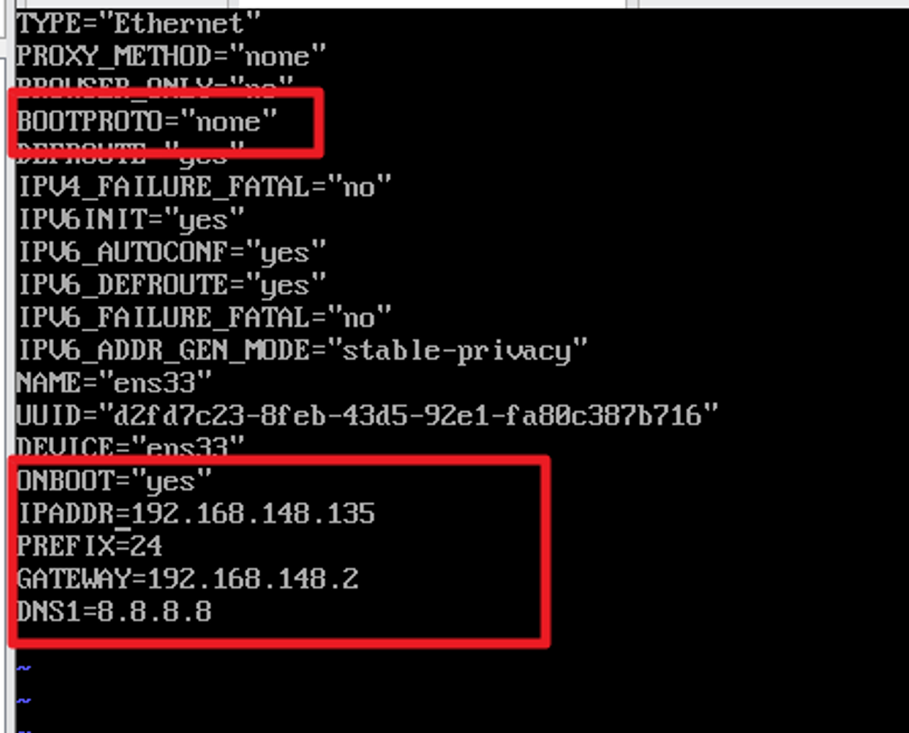 vi ifcfg-ens33 #vi로 파일을 열어 값을 수정해준다