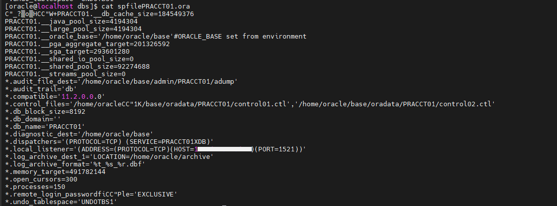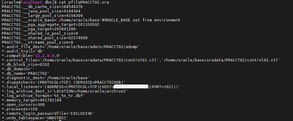 CREATE PFILE='/home/oracle/base/product/11.2.0/dbhome_1/dbs/pfilePRACCT02.ora' FROM SPFILE='/home/oracle/base/product/11.2.0/dbhome_1/dbs/spfilePRACCT01.ora';