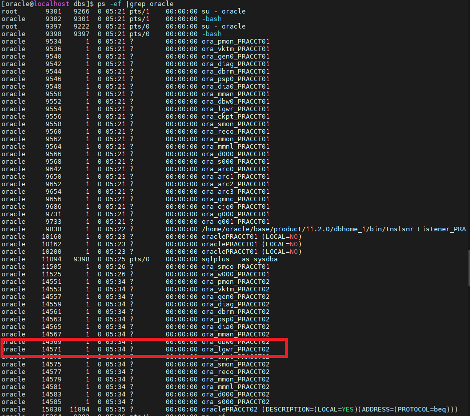 | 그냥 재기동시 SQL> ORA-01078: failure in processing system parameters LRM-00109: could not open parameter file '/home/oracle/base/product/11.2.0/dbhome_1/dbs/initPRACCT02.ora' 이때는 당황하지말고 다시 기존에 만들었던 pfile을 토대로 nomount 기동 SQL> STARTUP NOMOUNT PFILE='$ORACLE_HOME/dbs/pfilePRACCT02.ora'; ORACLE instance started. Total System Global Area 492707840 bytes Fixed Size 2214656 bytes Variable Size 301991168 bytes Database Buffers 184549376 bytes Redo Buffers 3952640 bytes spfile로 pfile 생성 SQL> CREATE SPFILE FROM PFILE='$ORACLE_HOME/dbs/pfilePRACCT02.ora'; File created. SQL> SHUTDOWN IMMEDIATE; ORA-01507: database not mounted ORACLE instance shut down. SQL> STARTUP; ORACLE instance started. Total System Global Area 492707840 bytes Fixed Size 2214656 bytes Variable Size 301991168 bytes Database Buffers 184549376 bytes Redo Buffers 3952640 bytes Database mounted. Database opened. |