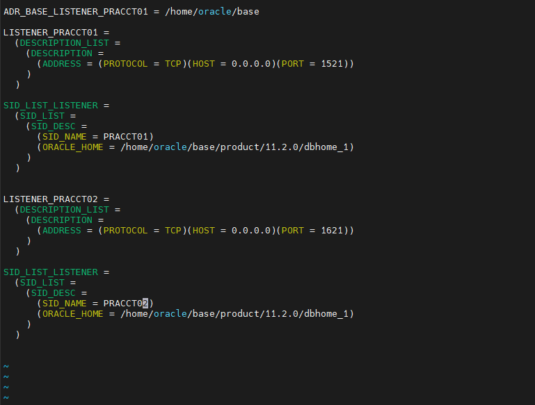 새로 만들어진 pfilePRACCT02.ora 에서 PRACCT01로 되어있는부분을 수동으로 수정