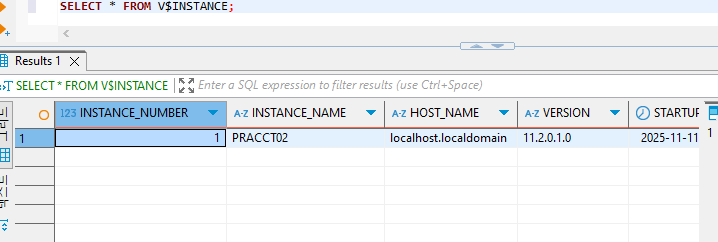 새로 만들어진 pfilePRACCT02.ora 에서 PRACCT01로 되어있는부분을 수동으로 수정